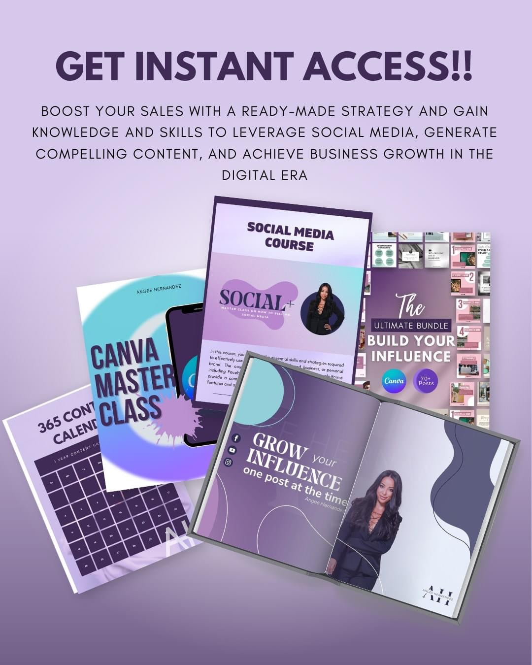 Content Creation Essentials: Never run out of content ideas again! Gain access to a 365-day content calendar filled with inspiration for your posts, stories, and blogs. Elevate your content game with professional templates and graphics designed to captivate your audience.