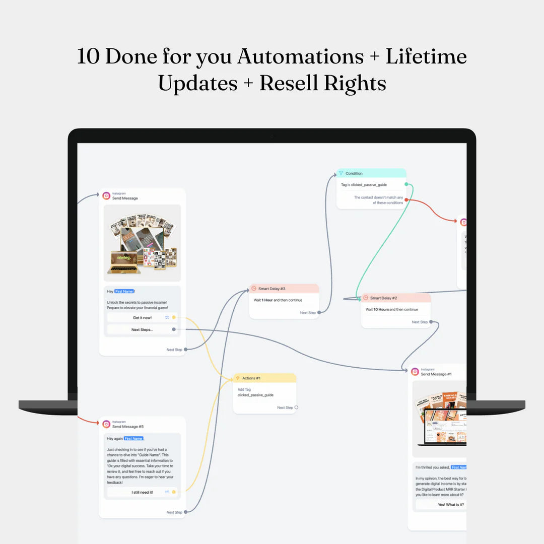 This Master Resell Rights (MRR) and Private Label Rights (PLR) bundle offers a comprehensive collection of Done-For-You ManyChat automation templates for busy digital product owners, entrepreneurs, content creators, coaches and more.
